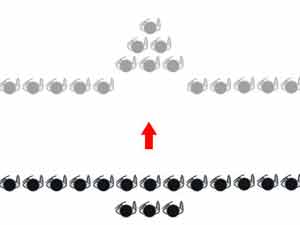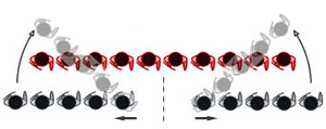 Die Linie marschiert geschlossen auf den Gegner zu und teilt sich kurz vorher in zwei große Flanken. Klappt alles nach Plan, kann man den Gegner falten und zusammendrängen.